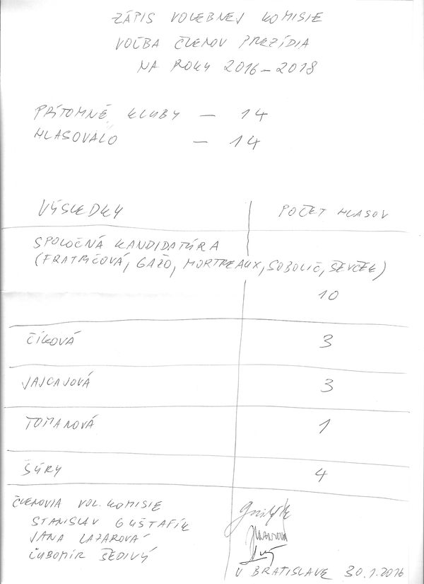pSFP dalo výzvu klubom, aby sa do 2015-12-15 nominovali svojich členov do nového pSFP a RevK (2016-2018) v posledných zápisoch z pSFP 2015. Do daného termínu sa neprihlásil žiadny kandidát.